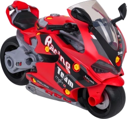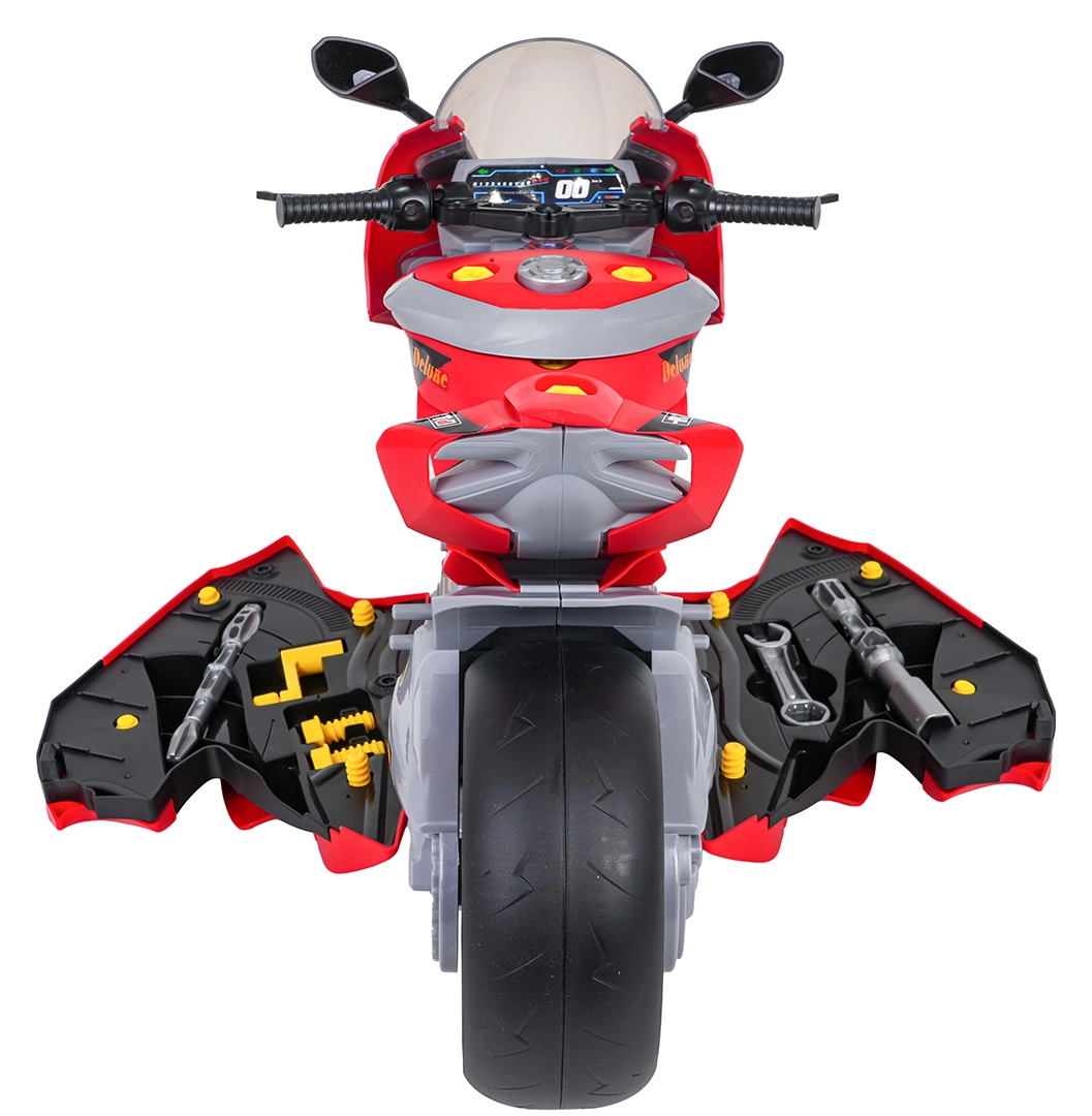 Αυτό το έξυπνα σχεδιασμένο παιχνίδι συνδυάζει μοτοσικλέτα για φανταστική οδήγηση και μηχανουργείο για μικρούς μάστορες. Με το άνοιγμα των πλαϊνών πάνελ αποκαλύπτονται τα φωτιζόμενα έμβολα του κινητήρα, τα οποία μπορούν να αφαιρεθούν και να εξεταστούν. Τα παιδιά μαθαίνουν βασικές αρχές λειτουργίας της μηχανής με παιγνιώδη τρόπο, αναπτύσσοντας παράλληλα λεπτή κινητικότητα και δεξιοτεχνία.