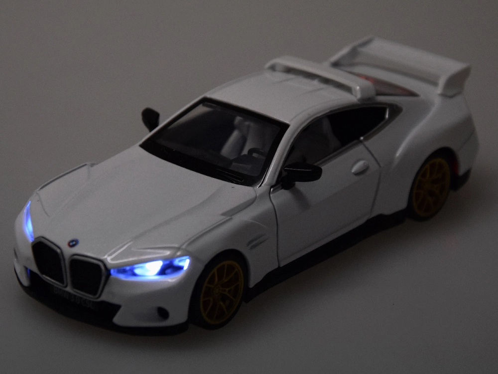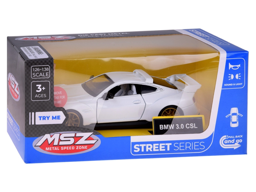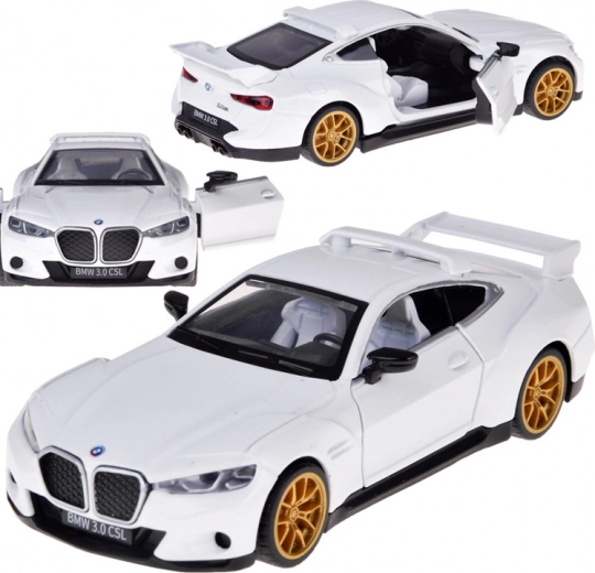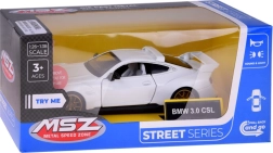 Συμπαγές αλλά προσεγμένα κατασκευασμένο μοντέλο BMW 3.0 CSL που θα ενθουσιάσει παιδιά και φίλους της κλασικής αυτοκινητιστικής αισθητικής. Το μεταλλικό αμάξωμα, οι σπορ γραμμές και τα χαρακτηριστικά στοιχεία της BMW υπογραμμίζουν την αυθεντική εμφάνιση. Με το άνοιγμα των θυρών ενεργοποιούνται τα μπροστινά και πίσω φώτα και ακούγονται ρεαλιστικοί ήχοι κινητήρα και κίνησης, κάνοντας το παιχνίδι ακόμη πιο συναρπαστικό.