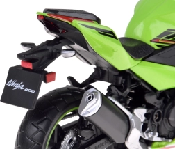 Οι καρίνας με αντιθετικά γραφικά, οι λεπτομερείς δίσκοι φρένων, οι καθρέφτες και ο πίνακας οργάνων αναπαράγουν πιστά την πραγματική NINJA 400. Εξαιρετικό κομμάτι για κάθε συλλογή.