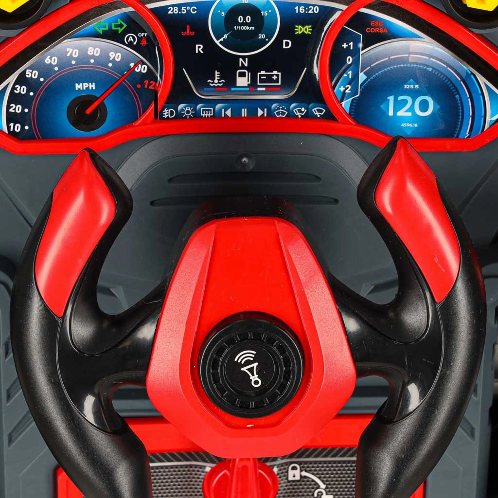 Ήχοι κινητήρα και κόρνας, αναβοσβήνοντα φώτα, κουμπί εκκίνησης και προειδοποιητικό φως μετατρέπουν το παιδικό δωμάτιο σε πραγματικό συνεργείο αυτοκινήτων.