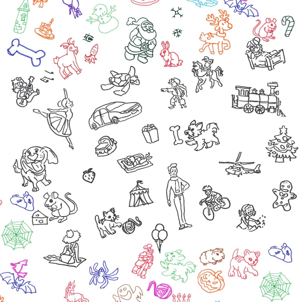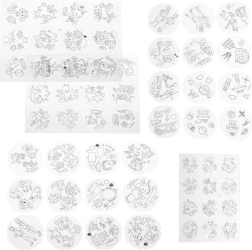 Στη συσκευασία θα βρείτε 6 φύλλα με 12 εικόνες το καθένα – ζωάκια, αντικείμενα και εποχιακά μοτίβα για αντιγραφή, χρωμάτισμα και εκμάθηση σχημάτων.
