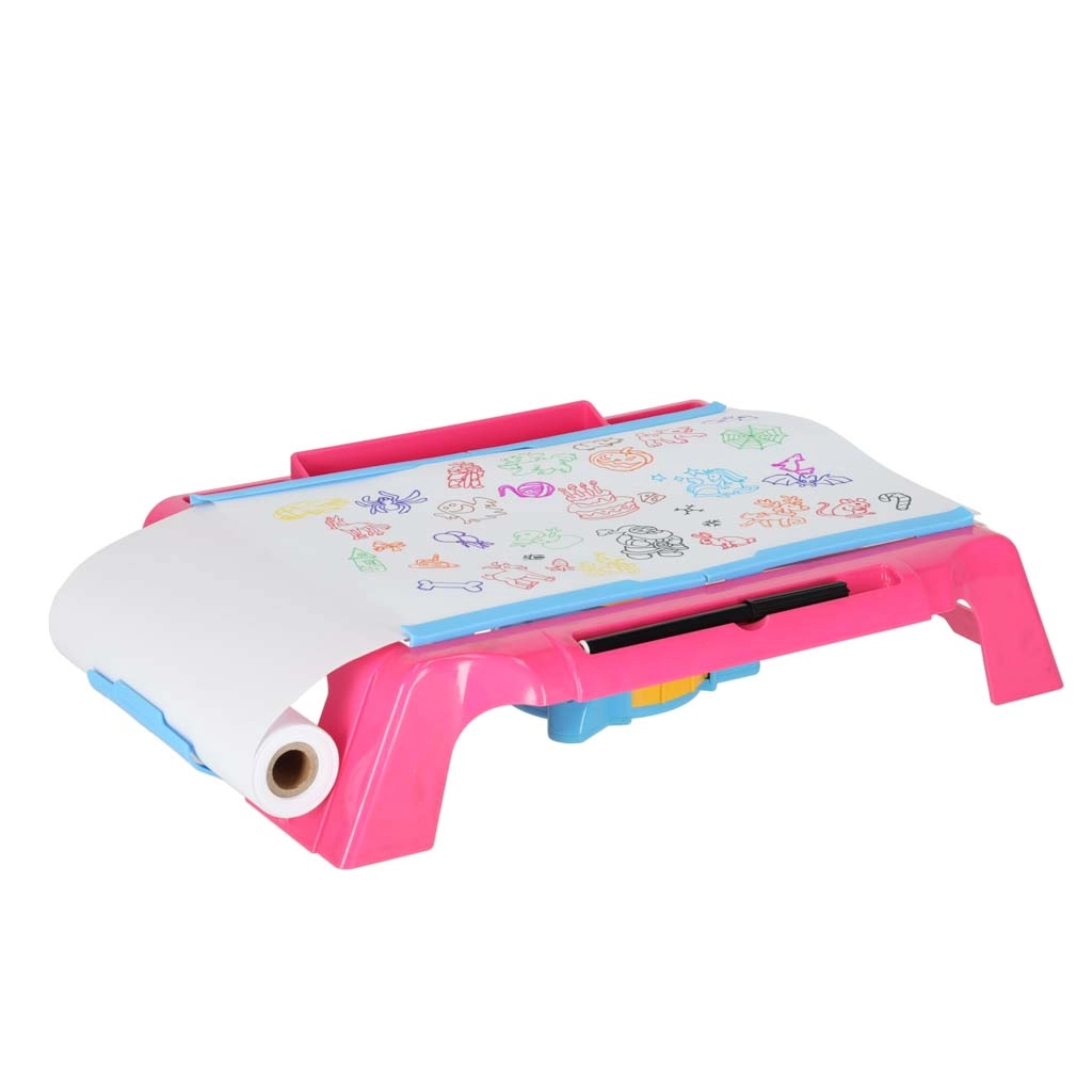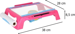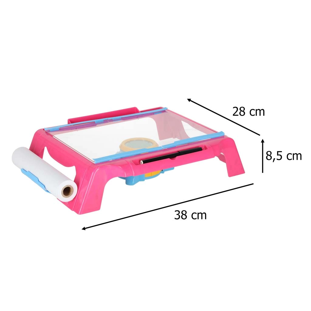 Αυτό το συμπαγές τραπεζάκι ζωγραφικής με προτζέκτορα προβάλλει εικόνες απευθείας στο χαρτί, ώστε τα παιδιά να μπορούν εύκολα να αντιγράφουν και να μαθαίνουν να σχεδιάζουν βήμα προς βήμα. Η ευανάγνωστη επιφάνεια εργασίας, ο τροφοδότης με ρολό χαρτιού και οι 4 κλιπς κρατούν το χαρτί σταθερά στη θέση του. Ο ρυθμιζόμενος φακός του προτζέκτορα εξασφαλίζει ευκρινή εικόνα για καθαρές γραμμές.
