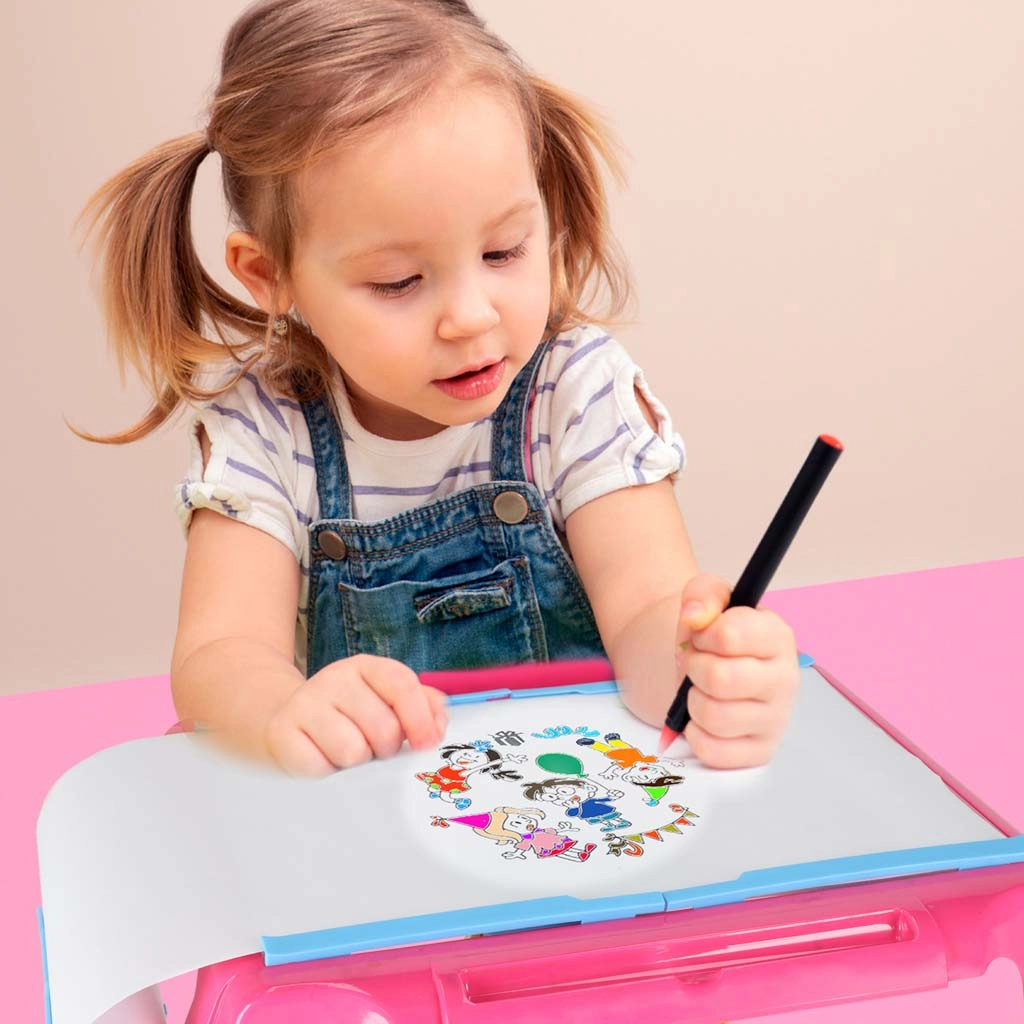 Ψάχνετε δώρο που και διασκεδάζει και εκπαιδεύει; Αυτό το ροζ σετ ζωγραφικής με προτζέκτορα είναι η τέλεια επιλογή για μικρούς καλλιτέχνες – σταθερό, φορητό και έτοιμο για δημιουργία.
