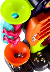 Μοχλοί, κουμπιά και περιστροφικοί μηχανισμοί επιτρέπουν στα παιδιά να κατευθύνουν ενεργά τη διαδρομή των μπιλιών, αναπτύσσοντας τη λεπτή κινητικότητα και την ακρίβεια των κινήσεων.