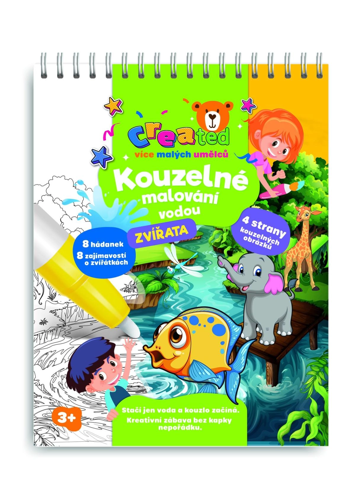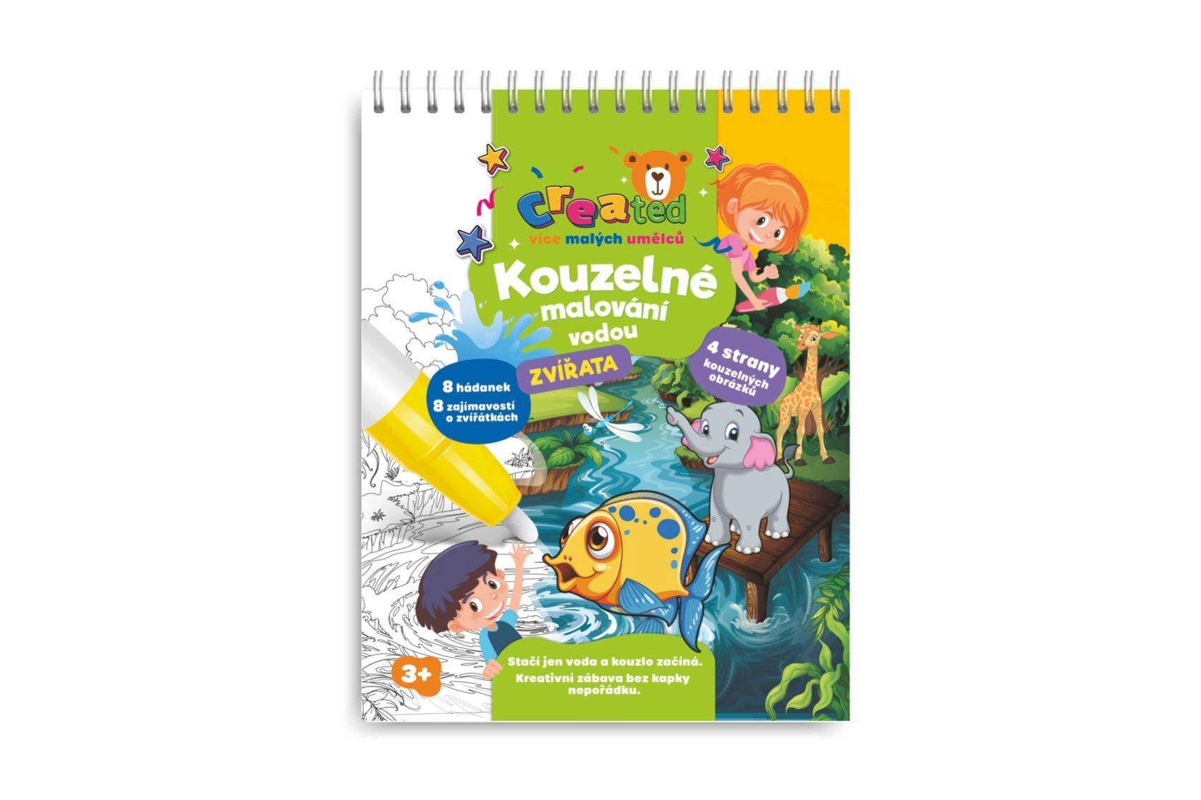 Ανακαλύψτε χαλαρό ζωγράφισμα χωρίς ακαταστασία! Το δημιουργικό μπλοκ με θέμα τα ζωάκια περιλαμβάνει 4 μαγικές εικόνες, υδατογραφική πένα και διασκεδαστικούς γρίφους. Αρκεί να προσθέσετε νερό και τα χρώματα ζωντανεύουν – μόλις στεγνώσουν εξαφανίζονται και τα παιδιά μπορούν να ζωγραφίσουν ξανά.