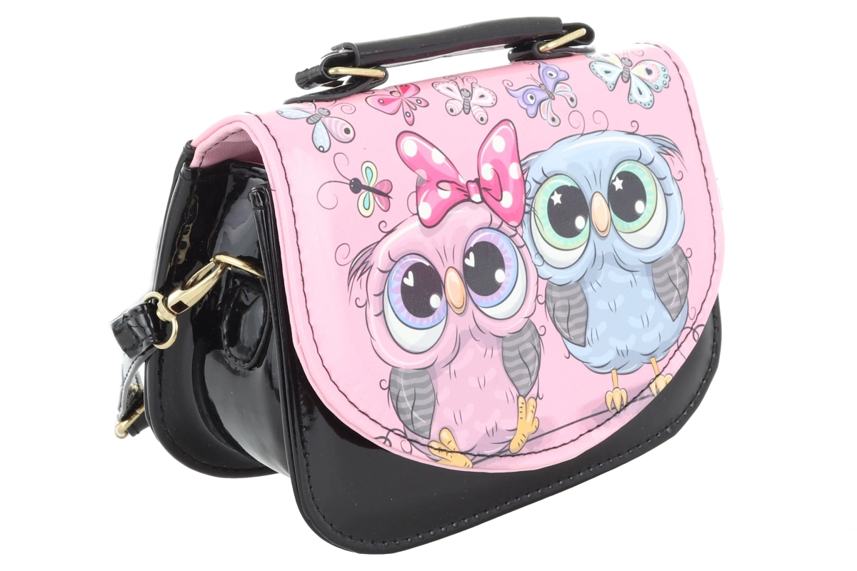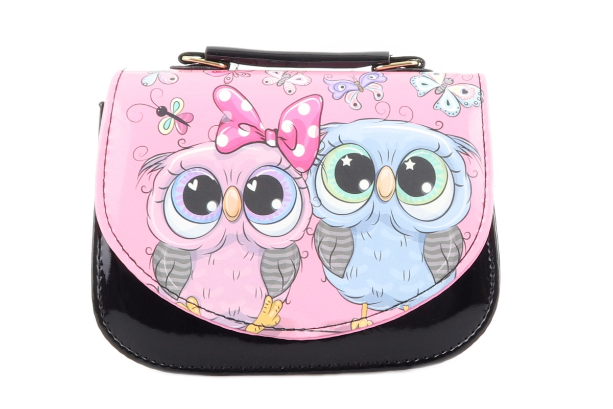 Αυτή η παιδική τσάντα σε κομψό μαύρο χρώμα με χαρούμενη εκτύπωση κουκουβαγιών είναι ιδανική για τη μεταφορά μικροπραγμάτων, όπως χαρτομάντιλα, μικρούς θησαυρούς ή ένα μικρό πορτοφόλι. Το γυαλιστερό κάτω μέρος και το πολύχρωμο καπάκι με χαριτωμένες λεπτομέρειες τραβούν την προσοχή και θα ενθουσιάσουν κάθε παιδί.