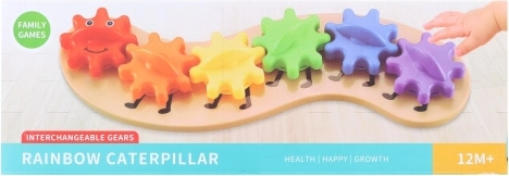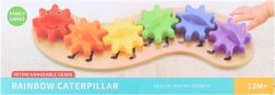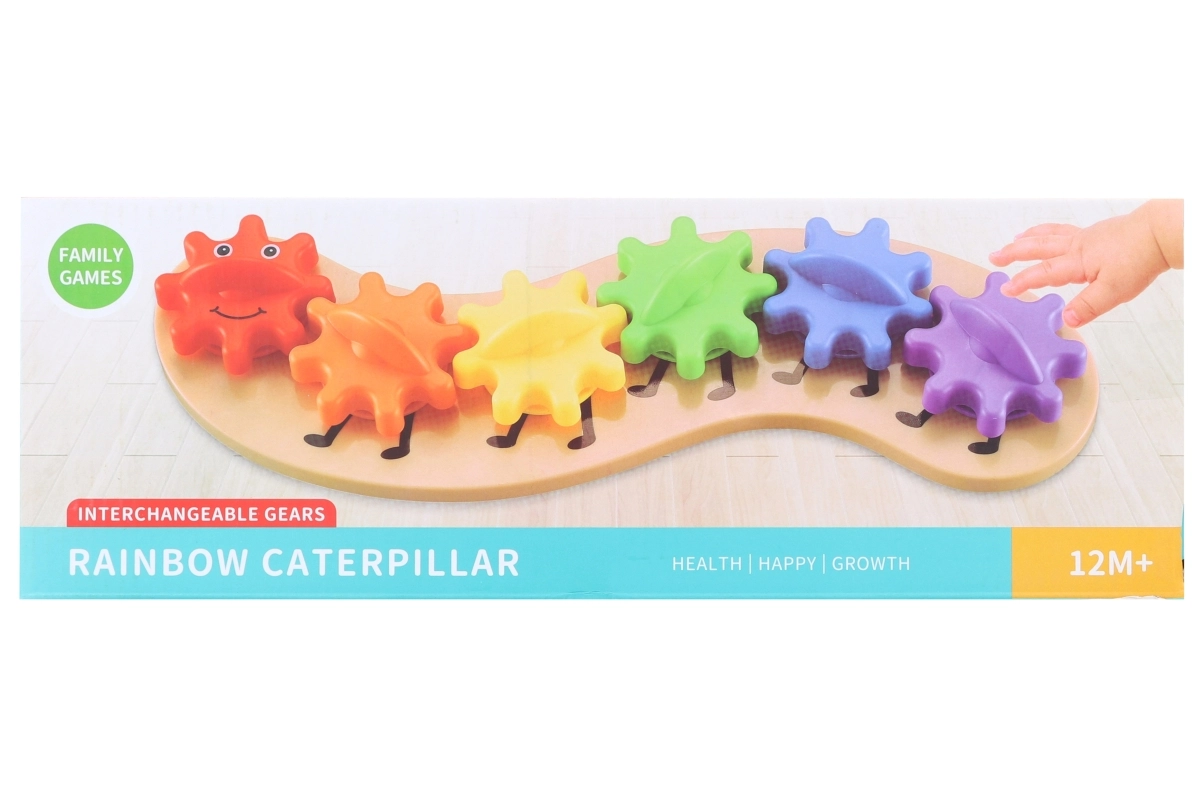 Αυτό το έξυπνο παιχνίδι σε σχήμα κάμπιας χρησιμοποιεί συνδεδεμένους οδοντωτούς τροχούς που περιστρέφονται κατά την κίνηση και δημιουργούν ένα συναρπαστικό θέαμα. Τα παιδιά αφομοιώνουν φυσικά τις αρχές αιτίας και αποτελέσματος, εξερευνούν τους μηχανισμούς μετάδοσης και αναπτύσσουν τη λεπτή κινητικότητα και τον συντονισμό ματιού–χεριού.