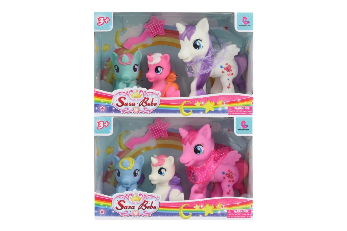Ένα χαριτωμένο σετ τριών μονόκερων που θα χαροποιήσει κάθε μικρό λάτρη των μαγικών ζωάκιων. Στη συσκευασία θα βρείτε και ένα πρακτικό χτενάκι για το χτένισμά τους. Ιδανικό παιχνίδι για την ανάπτυξη της φαντασίας και της λεπτής κινητικότητας για παιδιά από 3 ετών. Οι compact διαστάσεις της συσκευασίας 20,5 × 13,5 × 6 cm το κάνουν ιδανικό και για ταξίδια.