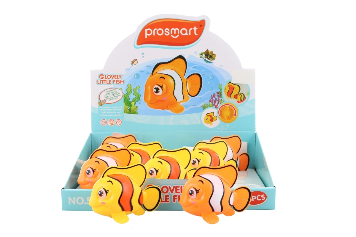 Αυτό το χαριτωμένο κουρδιστό ψαράκι μεγέθους περίπου 10 × 7 × 5,5 cm μετατρέπει το συνηθισμένο μπάνιο σε μια διασκεδαστική υδάτινη περιπέτεια. Το απλό κούρδισμα ενεργοποιεί τον μηχανισμό, χάρη στον οποίο το ψαράκι κινεί ζωηρά την πίσω ουρά του και επιπλέει στην επιφάνεια. Το παιχνίδι είναι κατασκευασμένο από ανθεκτικό πλαστικό και έχει σχεδιαστεί για τα μικρά παιδικά χέρια.