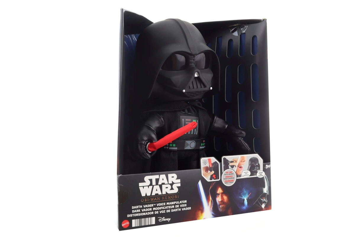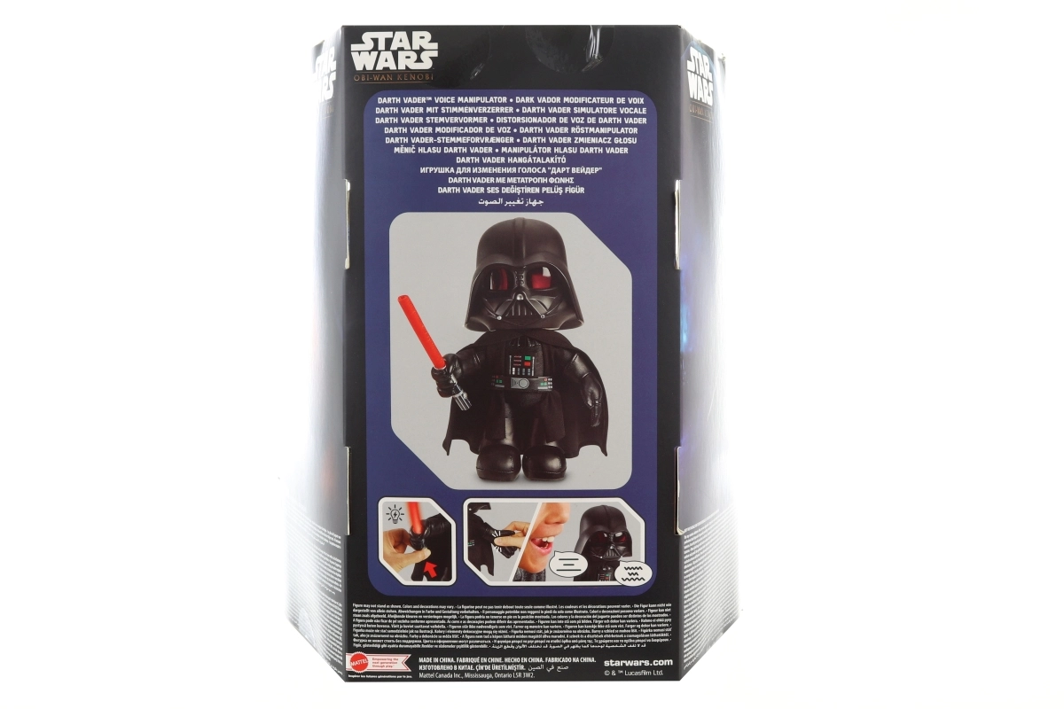 Ο αγαπημένος κακός από έναν γαλαξία πολύ, πολύ μακριά έρχεται ως ποιοτικό λούτρινο που χαροποιεί τόσο στο παιχνίδι όσο και στη συλλογή. Η φιγούρα Darth Vader είναι εξοπλισμένη με φωτιζόμενο σπαθί και αλλοιωτή φωνής, ώστε η παιδική φαντασία να απογειώνεται. Ο χειρισμός είναι απλός – οι λειτουργίες ενεργοποιούνται με πάτημα του χεριού.