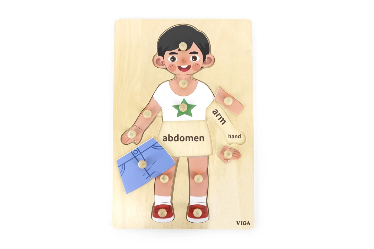 Ανακαλύψτε ένα διασκεδαστικό και εκπαιδευτικό παιχνίδι για τους μικρούς – ένα ξύλινο παζλ εισαγωγής με θέμα το αγόρι. Υποστηρίζει τη λεπτή κινητικότητα, τη λογική σκέψη και την εκμάθηση των μερών του ανθρώπινου σώματος. Περιλαμβάνει 12 κομμάτια και είναι ιδανικό για παιδιά από 18 μηνών.