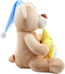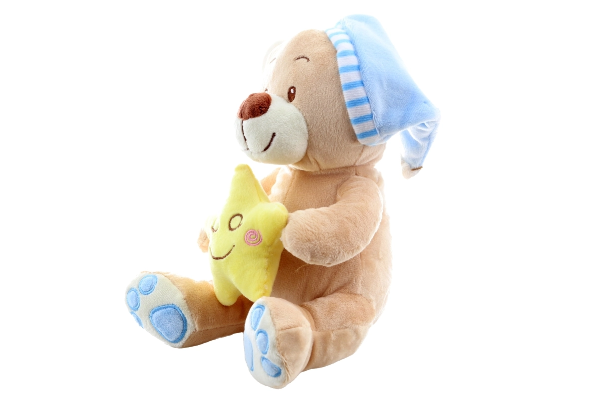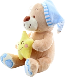 Το μαλακό λούτρινο, το γαλάζιο σκουφάκι και το κίτρινο αστεράκι βοηθούν να δημιουργηθεί μια ευχάριστη ατμόσφαιρα πριν τον ύπνο.