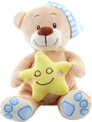 Χαριτωμένο λούτρινο αρκουδάκι με μπλε σκουφάκι και κίτρινο αστεράκι, ιδανικός πρώτος φίλος για βρέφη και μικρά παιδιά. Είναι φτιαγμένο από μαλακό και απαλό υλικό, έχει κεντημένες λεπτομέρειες για ασφαλές παιχνίδι και χάρη στις συμπαγείς διαστάσεις του ταιριάζει τέλεια στην κούνια και στο καρότσι. Ιδανικό ως αγκαλιάς για τον ύπνο και για ηρεμία κατά τη διάρκεια της ημέρας. Ηλικία 0+.