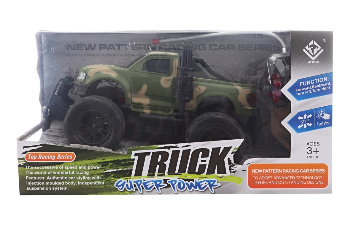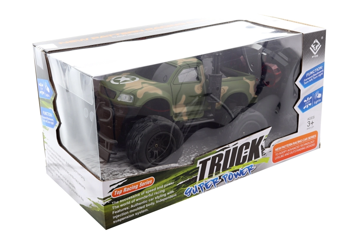 Μπείτε στον κόσμο της off‑road διασκέδασης με το στρατιωτικό RC jeep, που ξεχωρίζει για τον καμουφλάζ σχεδιασμό, το υψωμένο πλαίσιο και τους ανθεκτικούς τροχούς. Χάρη στα μπροστινά φώτα η οδήγηση είναι εντυπωσιακή και στο ημίφως, ενώ ο απλός τηλεχειρισμός είναι ιδανικός για αρχάριους.