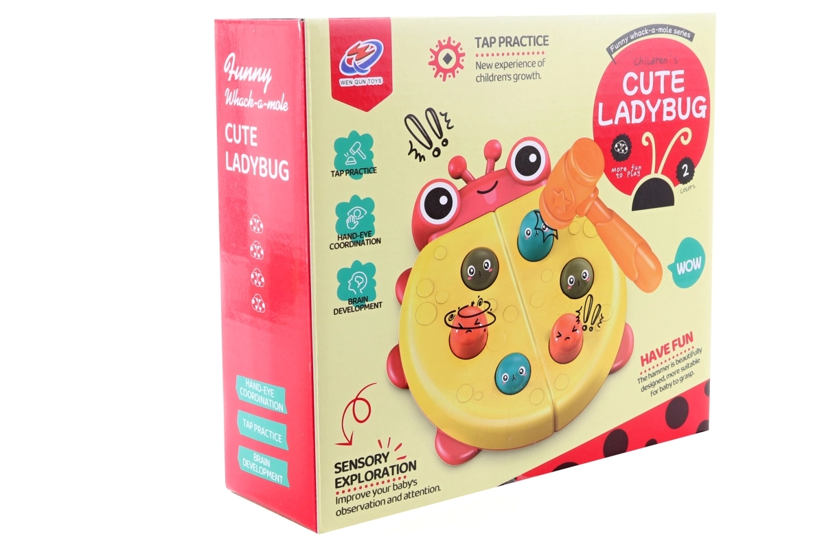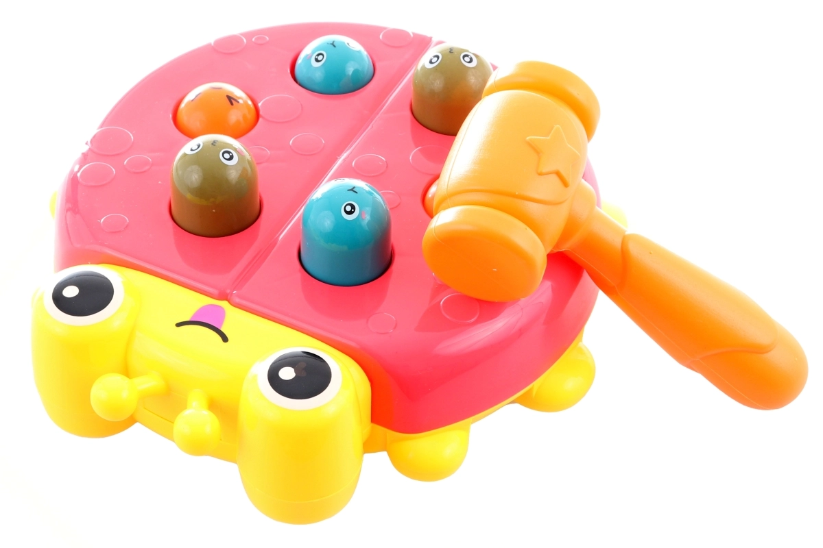 Διασκεδαστικό και ασφαλές παιχνίδι για τους μικρούς – παιχνίδι σφυριού σε σχήμα πασχαλίτσας. Υποστηρίζει τη λεπτή κινητικότητα, τον συντονισμό ματιού–χεριού και διδάσκει στα παιδιά την αρχή αιτίας και αποτελέσματος: όταν χτυπηθεί ένα κεφαλάκι, πετάγεται το άλλο. Ανθεκτική πλαστική κατασκευή και πρακτική συσκευασία σε κουτί.