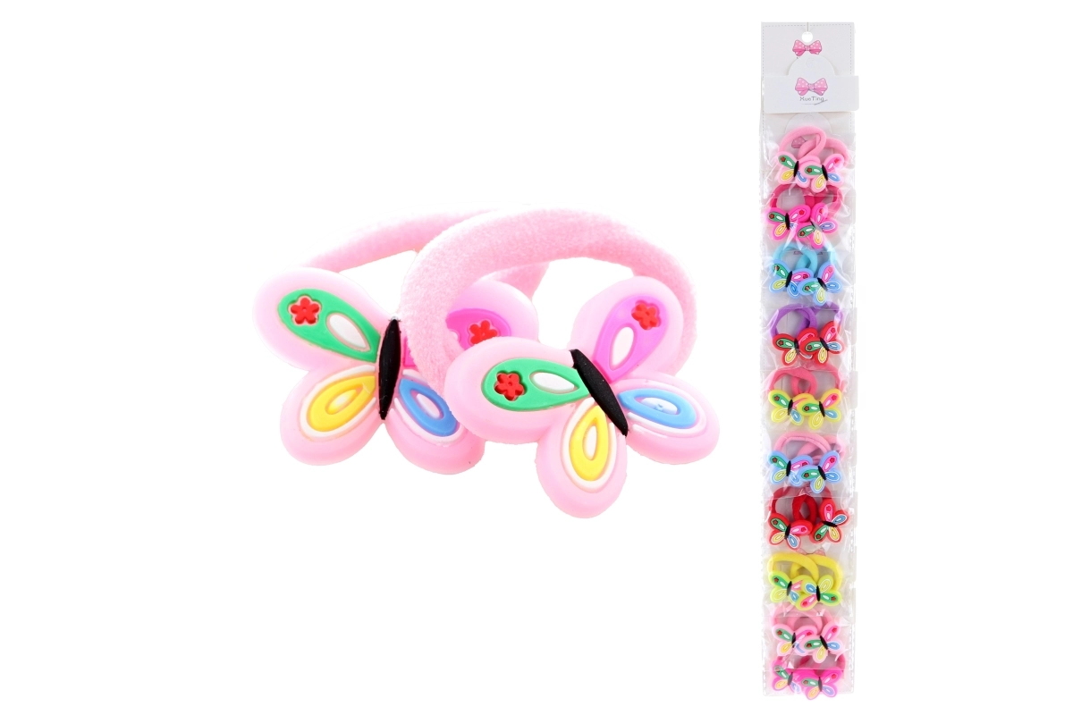 Χαριτωμένα λαστιχάκια μαλλιών με μοτίβο πεταλούδων που θα χαροποιήσουν παιδιά και ενήλικες. Κάθε σακουλάκι περιέχει 2 τεμάχια, πωλούνται μόνο ως συσκευασία των 10 σακουλιών. Ιδανικά για καθημερινή χρήση, συγκρατούν απαλά τα μαλλιά χωρίς τράβηγμα και δίνουν στο χτένισμα παιχνιδιάρικη όψη.