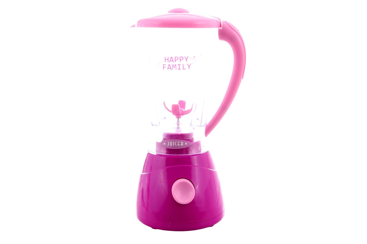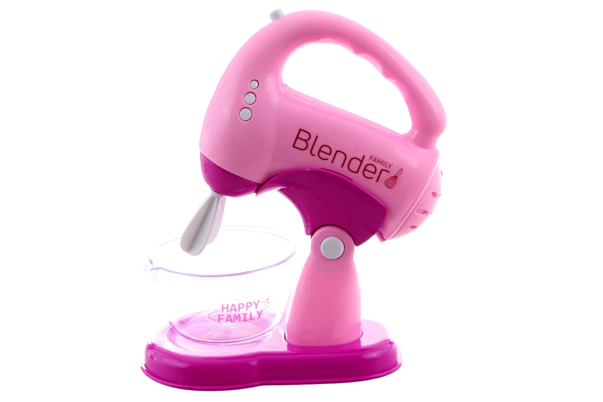Ροζ μίξερ με ένα κουμπί, διαφανή κανάτα και ορατή «λεπίδα», που περιστρέφεται και φωτίζει κατά το παιχνίδι.