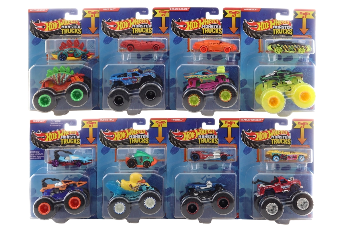 - 1× Monster Truck 1:64, 1× μικρό αυτοκινητάκι Hot Wheels 1:64