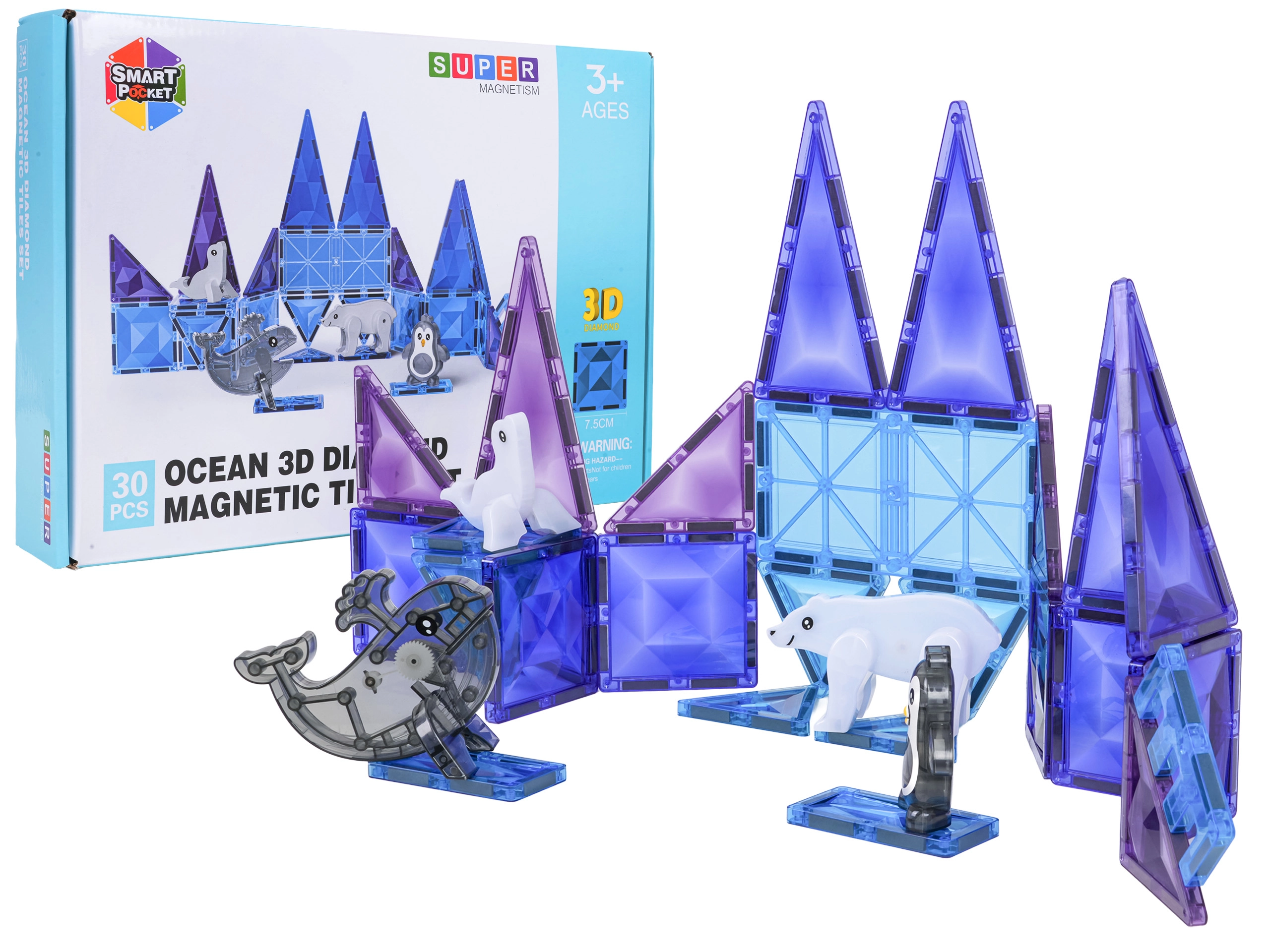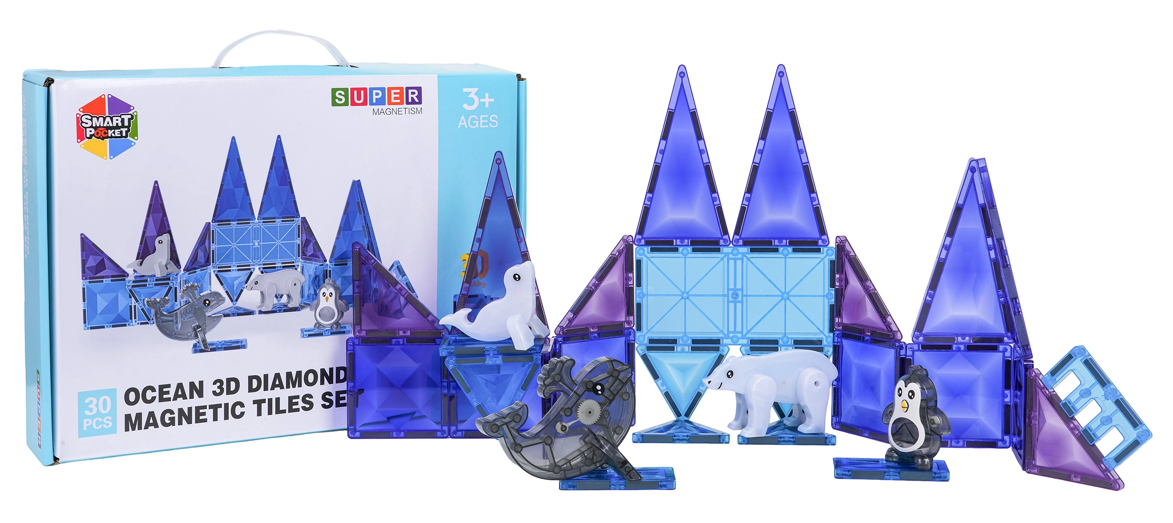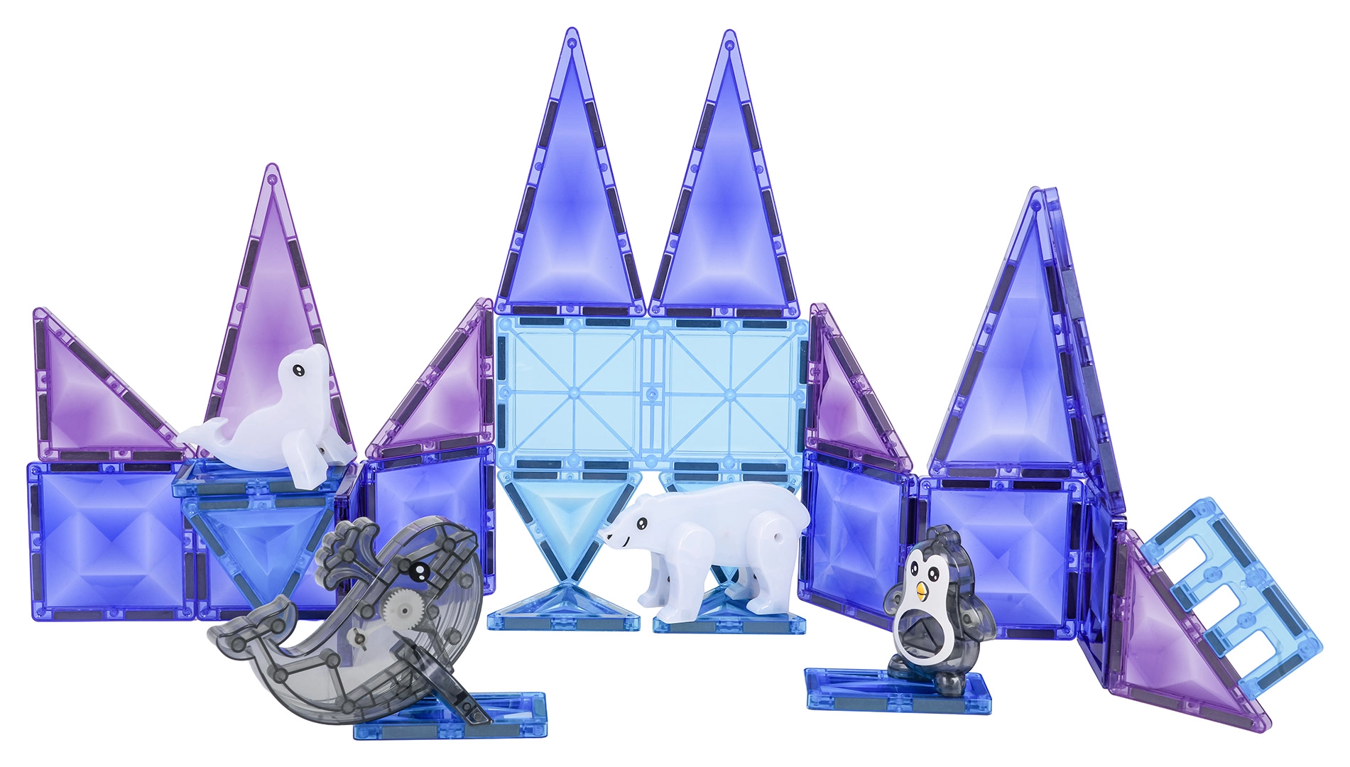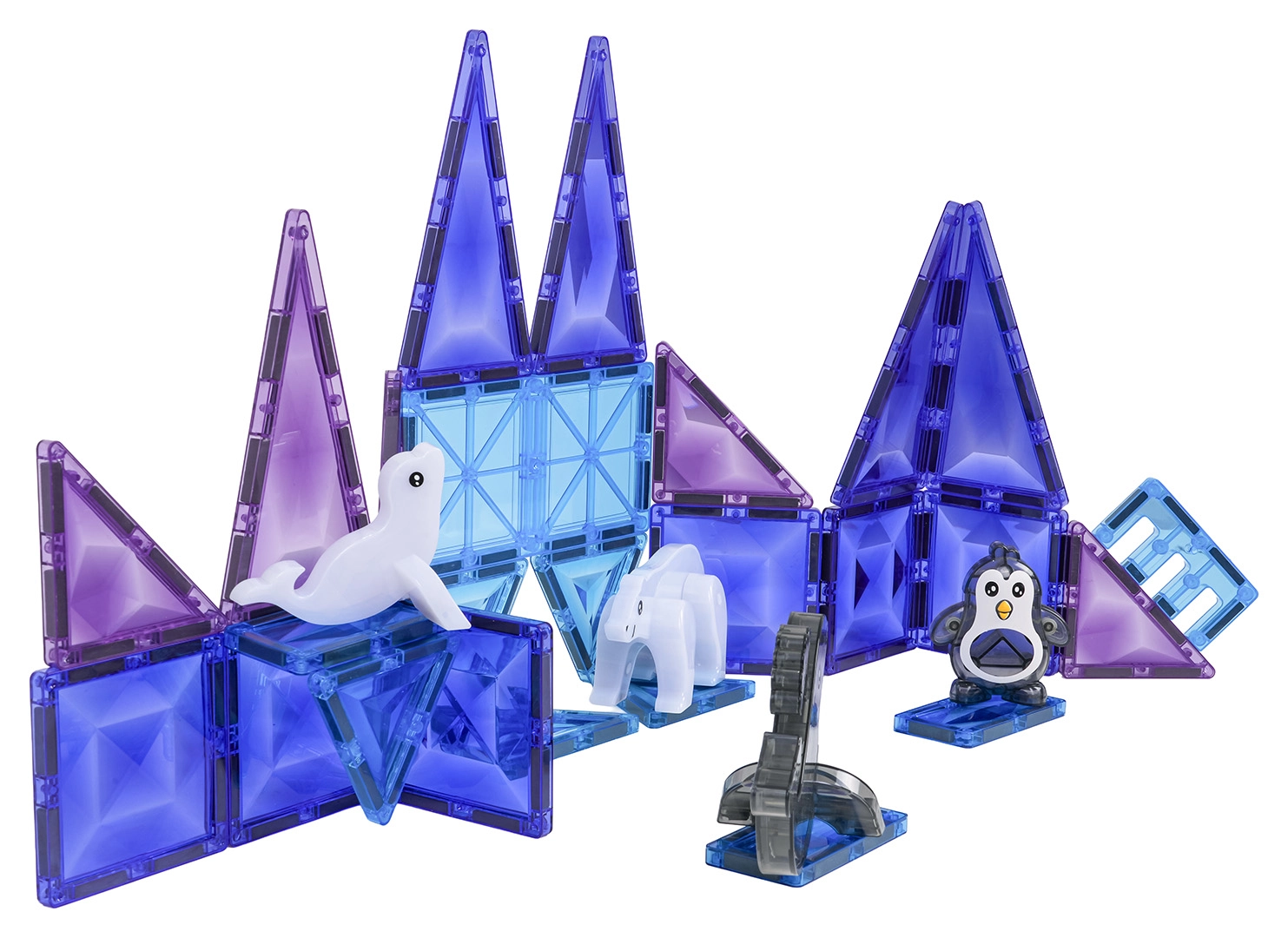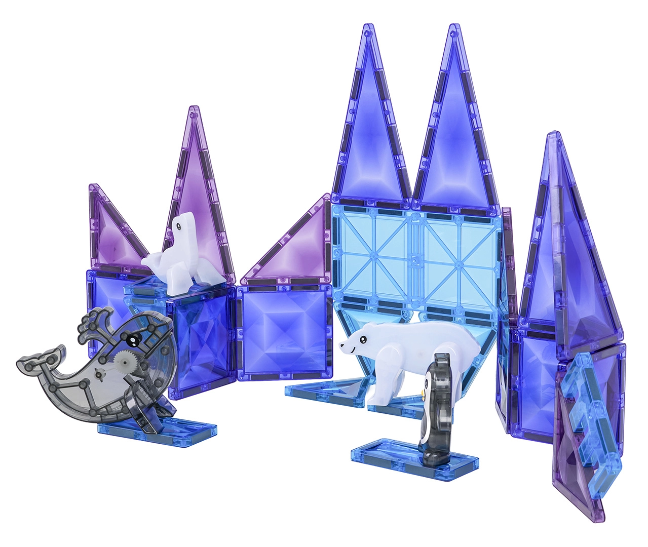 Το μαγνητικό σετ κατασκευών Ice Snow έχει σχεδιαστεί για παιδιά από 3 ετών. Τα ημιδιαφανή κομμάτια σε ψυχρά χρώματα συναρμολογούνται σε πύργους, τοίχους και παγωμένα παλάτια, ενώ οι μαγνητικές ενώσεις διατηρούν το σχήμα και εξασφαλίζουν σταθερότητα. Συμπεριλαμβάνονται επίσης χαριτωμένες φιγούρες – φώκια, πιγκουίνος, δελφίνι και πολική αρκούδα – που ζωντανεύουν κάθε παιχνίδι.