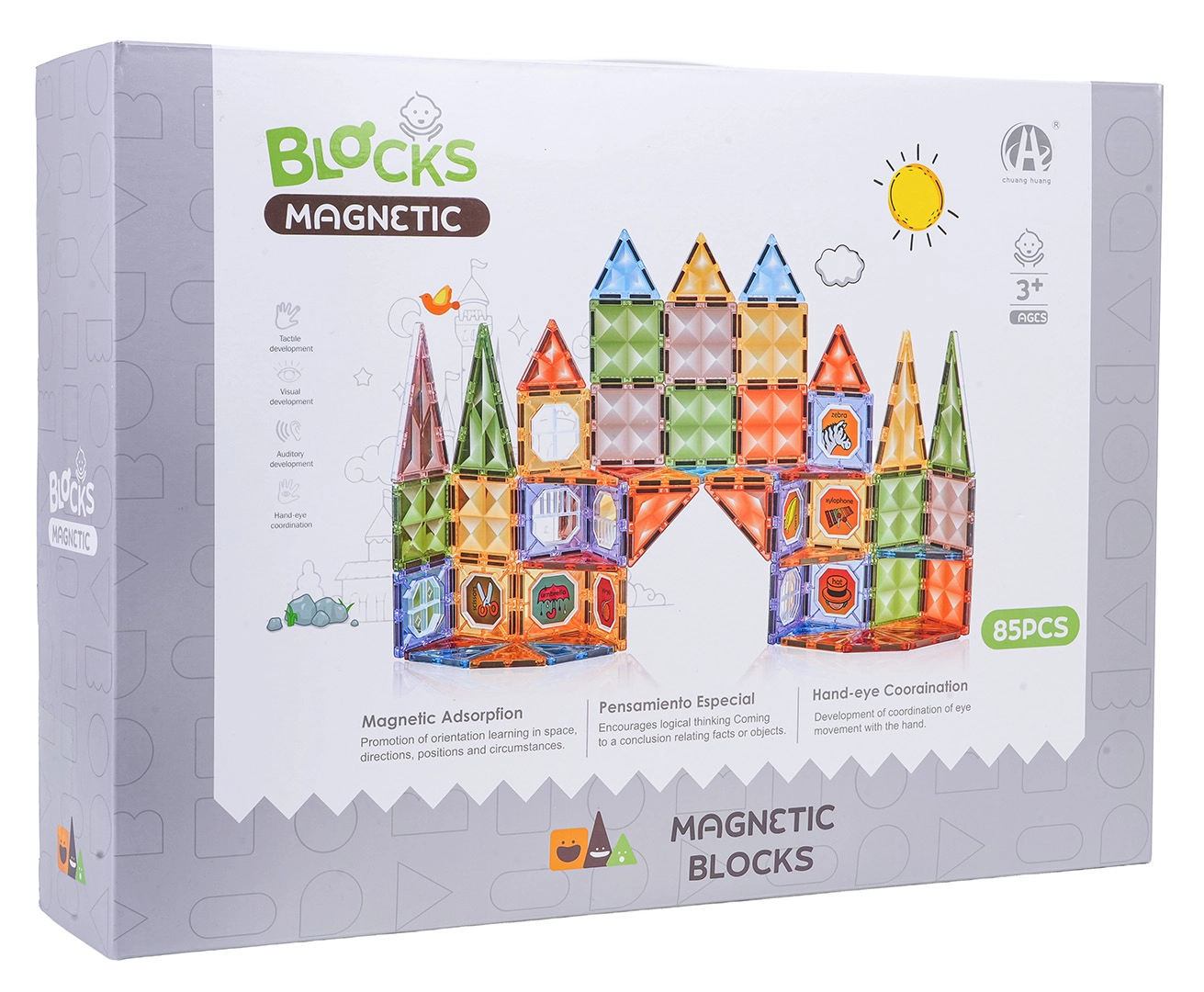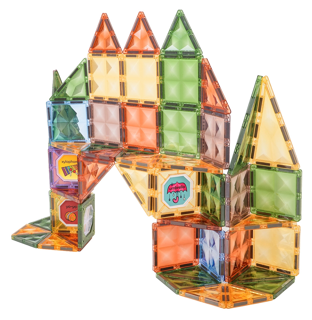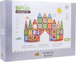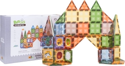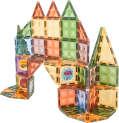 Αυτό το πλούσια εξοπλισμένο μαγνητικό σετ κατασκευών προσφέρει διαφανή πολύχρωμα τετράγωνα και τρίγωνα που συνδέονται με ασφάλεια στις ακμές. Τα παιδιά μπορούν να δημιουργούν κάστρα, αψίδες και γεωμετρικές κατασκευές ενώ ταυτόχρονα εξασκούν τη λεπτή κινητικότητα και τη συγκέντρωση. Τα κομμάτια είναι από υψηλής ποιότητας, ανθεκτικό πλαστικό και οι μαγνήτες εξασφαλίζουν σταθερή σύνδεση υπό διαφορετικές γωνίες.