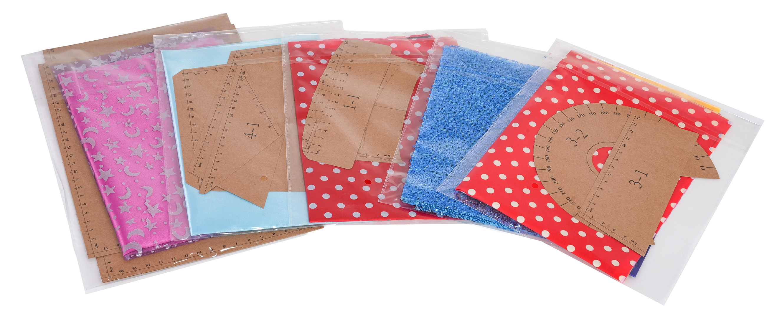 Το σετ περιλαμβάνει σακουλάκια με υφάσματα και χαρτονένια πατρόν που διευκολύνουν το ακριβές κόψιμο και την γρήγορη μετάβαση από τον σχεδιασμό στο ράψιμο.