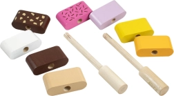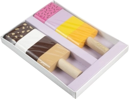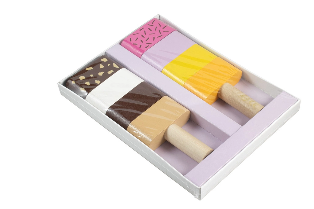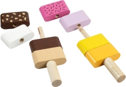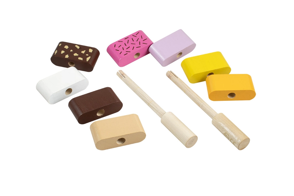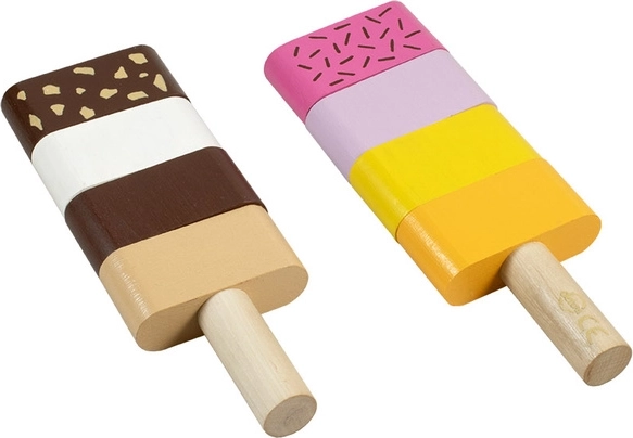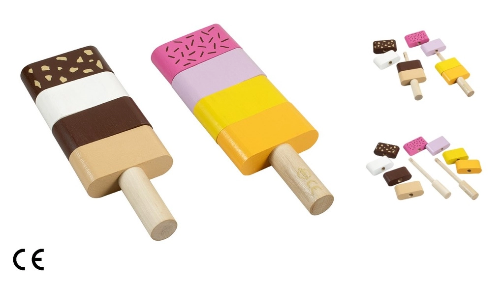 Διασκεδαστικό ξύλινο παιχνίδι λεπτών κινητικών δεξιοτήτων για τους μικρότερους: δύο συναρμολογούμενα παγωτά με εναλλάξιμα κομμάτια υποστηρίζουν τη λεπτή κινητικότητα, τη φαντασία και τη λογική σκέψη. Τα παιδιά μπορούν ελεύθερα να συνδυάζουν χρώματα και να φτιάχνουν «γεύσεις» σύμφωνα με τη φαντασία τους. Η ποιοτική ξύλινη κατασκευή και τα ασφαλή χρώματα συμμορφώνονται με τις ευρωπαϊκές προδιαγραφές ασφαλείας.