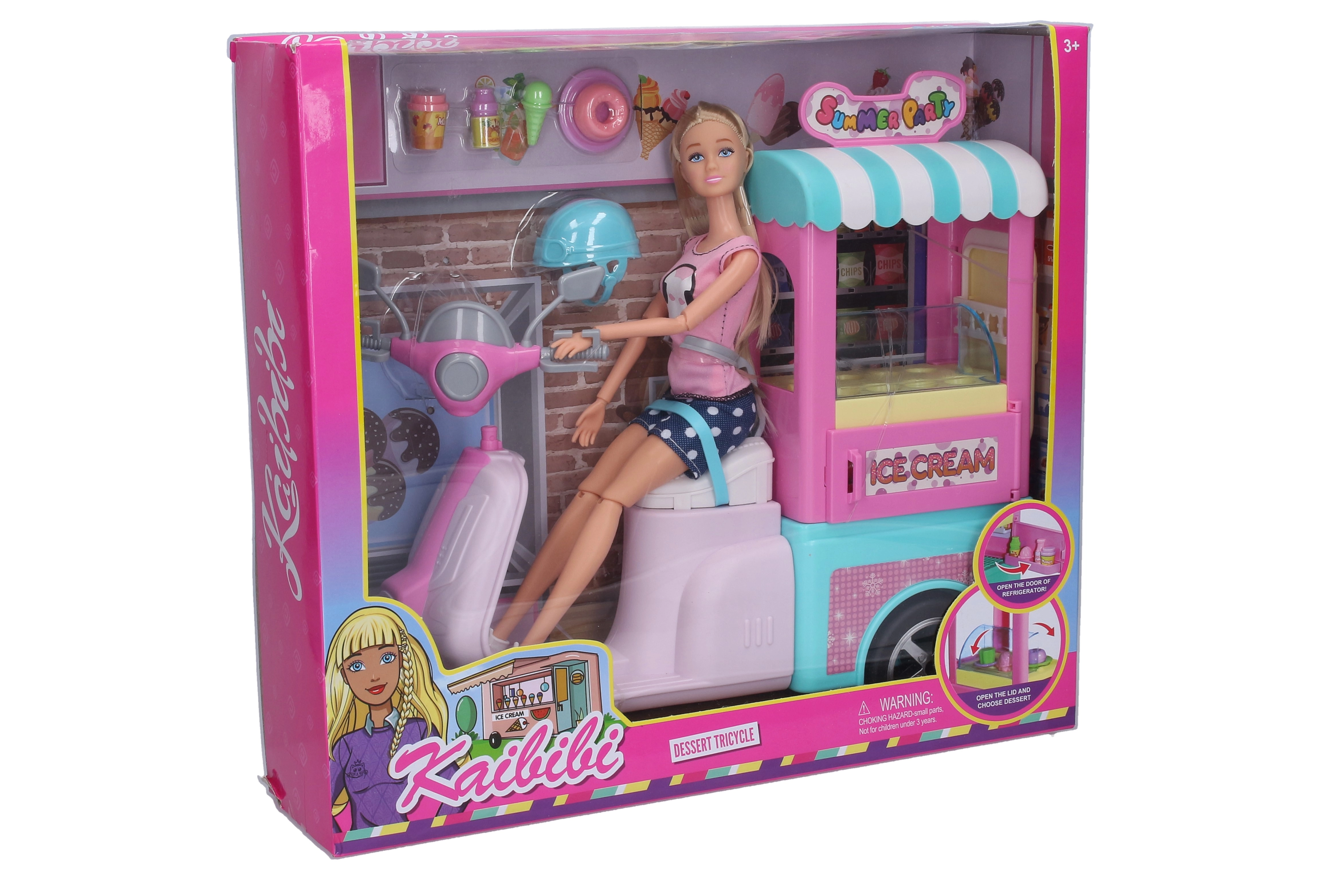 - Πλήρες σετ: κούκλα, σκούτερ παγωτατζή, κράνος και θεματικά αξεσουάρ.