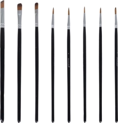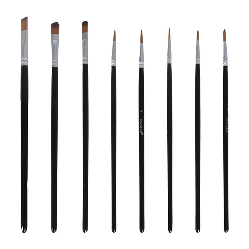 Σετ 10 πινέλων (επίπεδα και στρογγυλά) και ελαφριά πλαστική παλέτα με κοιλότητες και άνοιγμα για τον αντίχειρα για άνετο ανακάτεμα και λεπτομέρεια.