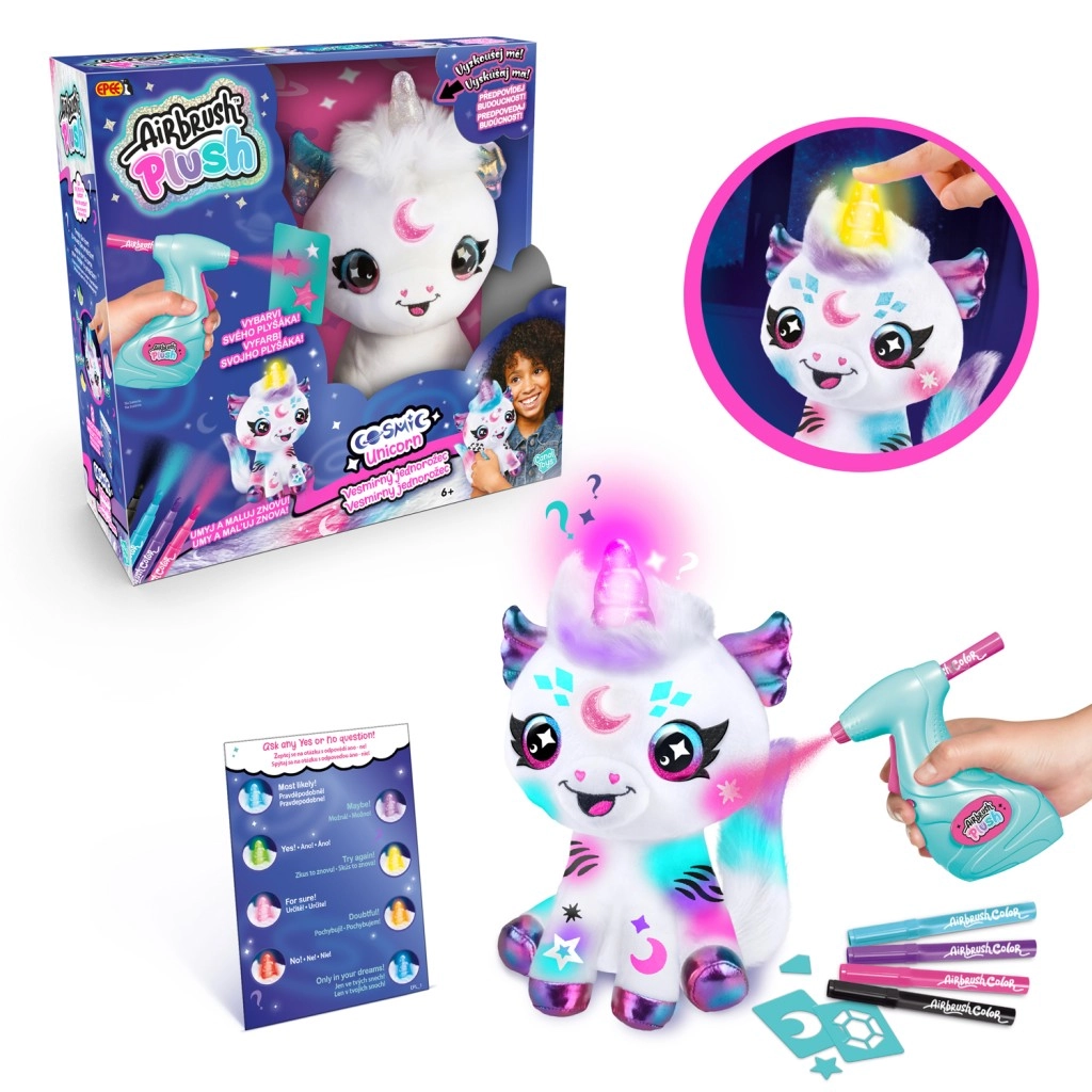 Ανάπτυξε τη φαντασία και τη λεπτή κινητικότητα με ένα δημιουργικό σετ που μετατρέπει κάθε απόγευμα σε πολύχρωμη περιπέτεια. Με το airbrush μπορείς εύκολα να ψεκάσεις τον λούτρινο μονόκερο, να συνδυάσεις διάφορα χρώματα και στένσιλ και να δημιουργήσεις πρωτότυπα διαστημικά μοτίβα. Αν βαρεθείς το σχέδιο, αρκεί να το ξεπλύνεις με νερό και να ξεκινήσεις από την αρχή.