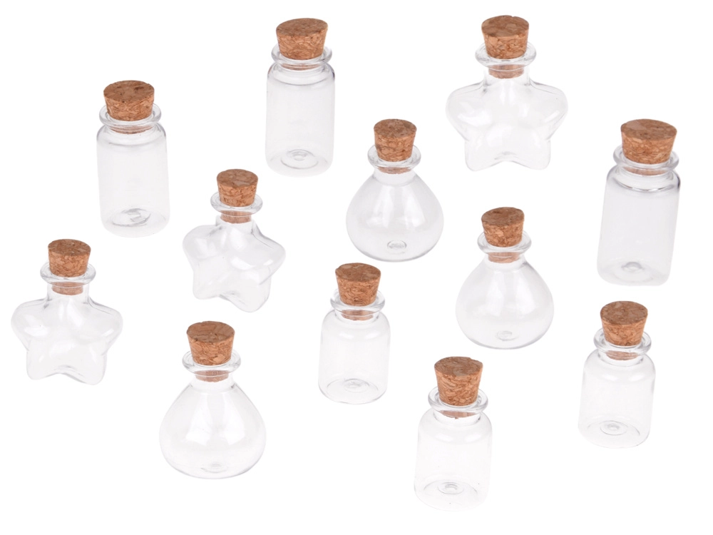 - 12× μίνι μπουκαλάκι διαφόρων σχημάτων με φελλό