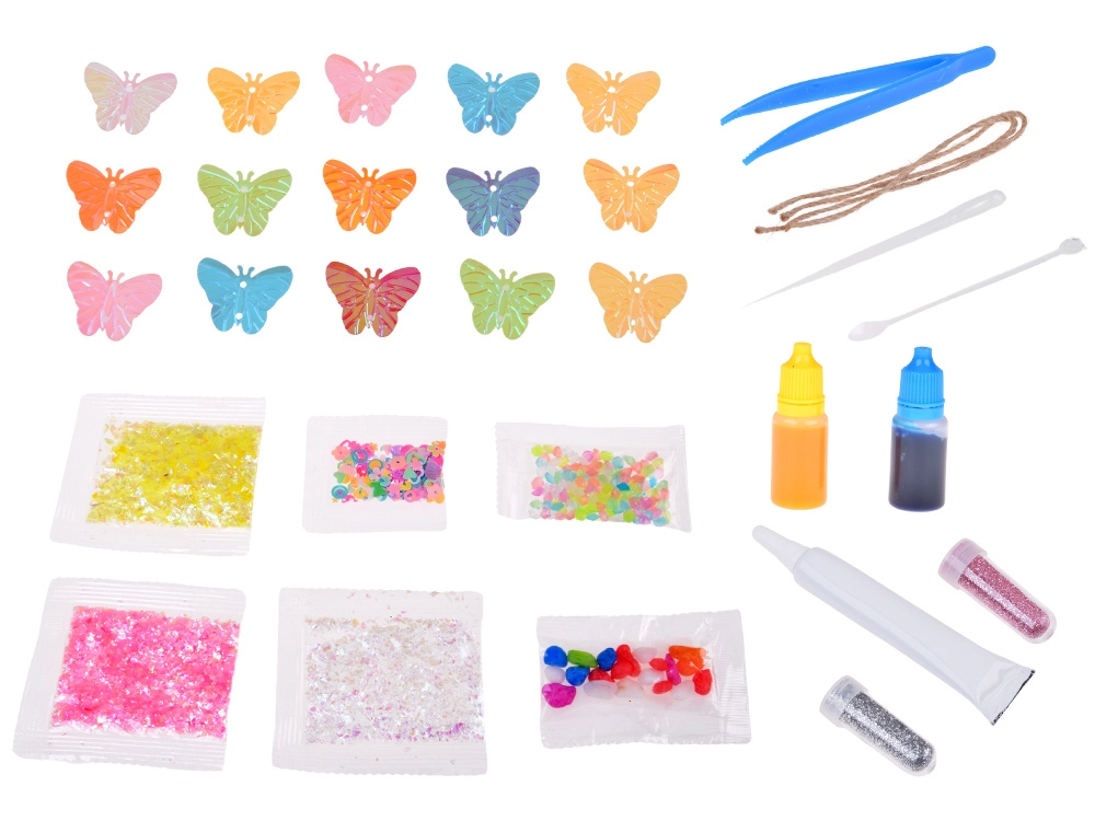 - Πλήρες σετ – 12 μίνι μπουκαλάκια διαφόρων σχημάτων, γκλίτερ, χρωστικές, διακοσμητικά, εργαλεία.