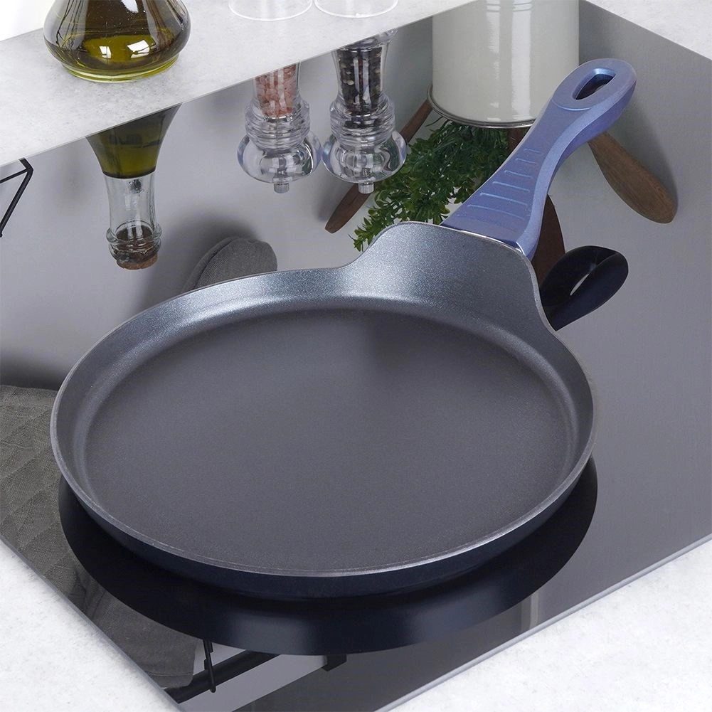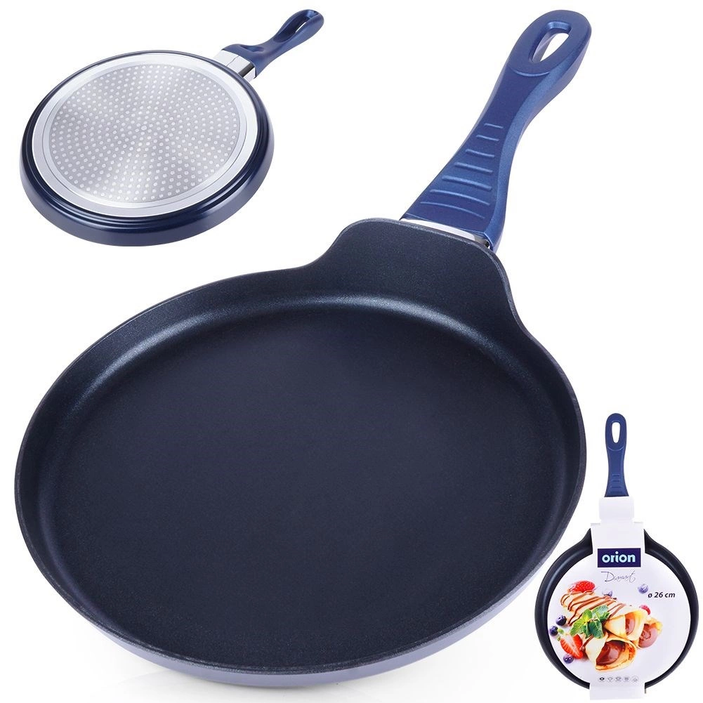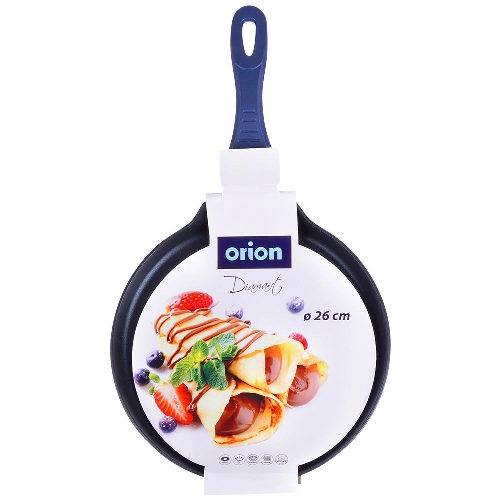 Ανακαλύψτε το τηγάνι για κρέπες με διαμαντένια αντικολλητική επίστρωση διαμέτρου 26 cm, κατασκευασμένο από ανθεκτικό χυτό αλουμίνιο. Προσφέρει γρήγορη και ομοιόμορφη κατανομή θερμότητας, είναι χωρίς PFOA και PTFE και χάρη στη εργονομική λαβή με αντιολισθητική σιλικόνη είναι άνετο στη χρήση. Κατάλληλο για όλους τους τύπους εστιών, συμπεριλαμβανομένης της επαγωγικής και πλένεται στο πλυντήριο πιάτων.