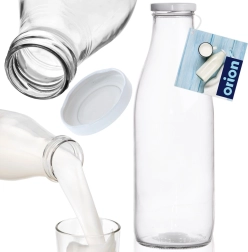 Πρακτικό γυάλινο μπουκάλι χωρητικότητας 1 λίτρου με μεταλλικό βιδωτό καπάκι για ασφαλή αποθήκευση και σερβίρισμα ποτών. Χάρη στο διάφανο γυαλί, την ανθεκτική κατασκευή και το αξιόπιστο κλείσιμο είναι ιδανικό για γάλα, χυμούς, λεμονάδες και κοκτέιλ. Κατάλληλο για ψυγείο, καθαρίζεται εύκολα και διατηρεί τα ποτά φρέσκα για περισσότερη ώρα.