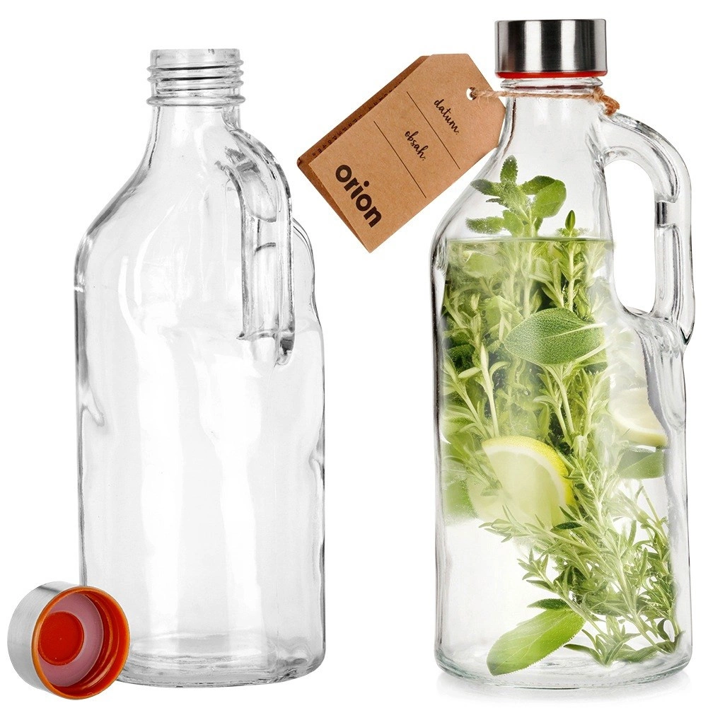 Αυτό το γυάλινο μπουκάλι με χερούλι είναι η ιδανική επιλογή για νερό, χυμούς, λεμονάδες, smoothie, καθώς και σπιτικά σιρόπια ή λικέρ. Το διαφανές γυαλί επιτρέπει τον έλεγχο του περιεχομένου, ενώ το μεταλλικό καπάκι με σιλικονούχο στεγανοποίηση αποτρέπει αξιόπιστα τις διαρροές και διατηρεί τα ροφήματα φρέσκα για περισσότερο. Χάρη στο χερούλι, το μπουκάλι προσφέρει εξαιρετικό κράτημα και εύκολο σερβίρισμα.
