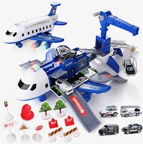 Ανακαλύψτε τον κόσμο δράσης της αστυνομίας με αυτό το πολυλειτουργικό σετ. Όταν ανοίγει, το μεγάλο αεροπλάνο μετατρέπεται σε πάρκινγκ με λειτουργικό γερανό, όπου τα παιδιά μπορούν να φορτώνουν, να εκφορτώνουν και να οργανώνουν αποστολές. Τα φωτεινά και ηχητικά εφέ προσθέτουν ρεαλισμό και διασκέδαση στο παιχνίδι.