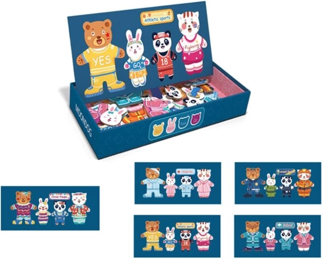 Αυτό το μαγνητικό σετ προσφέρει διασκεδαστικό ντύσιμο και συνδυασμό ρούχων για μια χαριτωμένη οικογένεια αρκούδων. Χάρη στα ανθεκτικά μαγνητικά κομμάτια, τα παιδιά αλλάζουν εύκολα τα μέρη της ένδυσης και μπορούν να δοκιμάζουν ατελείωτους συνδυασμούς. Το παιχνίδι αναπτύσσει τη δημιουργικότητα, τον συντονισμό χεριού–ματιού και τη λογική σκέψη.