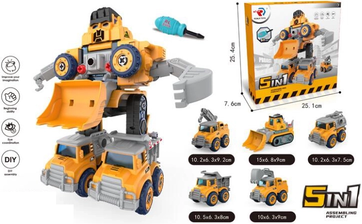 Ανακαλύψτε ένα πολυχρηστικό παιχνίδι που συνδυάζει τη διασκέδαση με τη μάθηση. Το σετ Robot 5-σε-1 DIY επιτρέπει στα παιδιά να συναρμολογούν το ρομπότ και να το μεταμορφώνουν σε διάφορα οχήματα. Τα απλά συνδετικά στοιχεία και το παιδικό κατσαβίδι ενισχύουν την συντονισμένη κίνηση χεριού–ματιού και τις τεχνικές δεξιότητες.