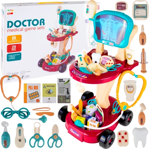Διασκεδαστικό ιατρικό σετ με λειτουργία «ακτινογραφίας» για μικρούς γιατρούς από 3 ετών, που προσφέρει ρεαλιστικό παιχνίδι ρόλων. Περιλαμβάνει έως και 29 κομμάτια, πρακτικά αξεσουάρ και φωτισμό με τροφοδοσία 3× LR44 (περιλαμβάνονται). Χάρη στις μεγάλες διαστάσεις και τον πλούσιο εξοπλισμό, τα παιδιά αναπτύσσουν λεπτή κινητικότητα, φαντασία και κοινωνικές δεξιότητες.