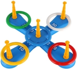 Αυτό το διασκεδαστικό παιχνίδι είναι ιδανικό για μικρά παιδιά. Περιλαμβάνει σταυρό με πέντε ακίδες, στις οποίες τα παιδιά ρίχνουν πολύχρωμα πλαστικά δαχτυλίδια με σκοπό τη συλλογή πόντων. Κάθε ρίψη όπου το δαχτυλίδι καταλήγει στην ακίδα αποφέρει πόντους, ενισχύοντας τον ανταγωνισμό και την ακρίβεια. Η δεύτερη παραλλαγή λειτουργεί με την ίδια αρχή, αλλά οι ακίδες έχουν αντικατασταθεί από καλαθάκια για μπαλάκια, προσφέροντας νέα πρόκληση.
