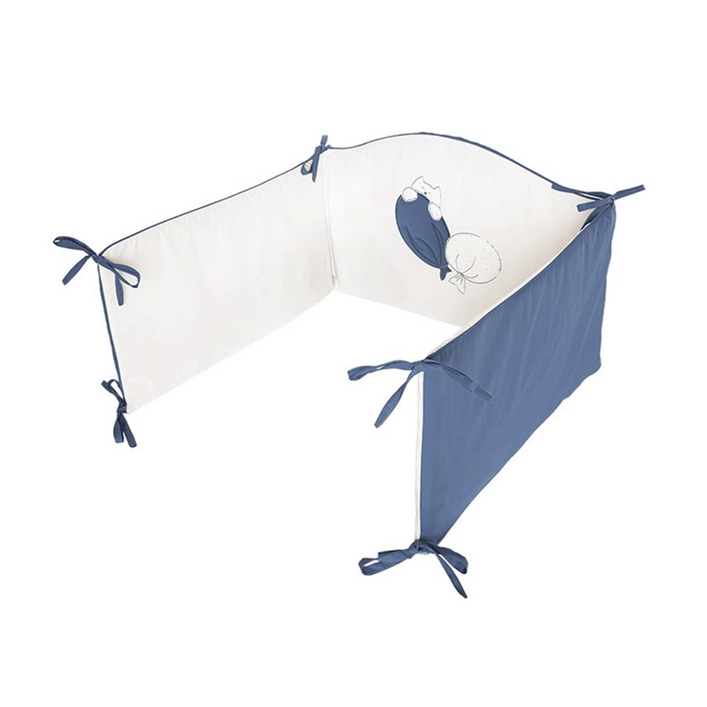 Ο πρακτικός σχεδιασμός με ασφαλές φερμουάρ χωρίς ελεύθερο τελείωμα προστατεύει από ανεπιθύμητο ξεκόλλημα. Το προστατευτικό με γέμιση και δεσίματα περιμετρικά αυξάνει την άνεση και την ασφάλεια στην κούνια.