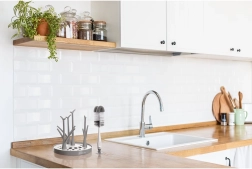 Η ενσωματωμένη βεντούζα στερεώνει σταθερά τη βούρτσα σε λείες επιφάνειες, διευκολύνοντας το στέγνωμα και κρατώντας τον πάγκο καθαρό.