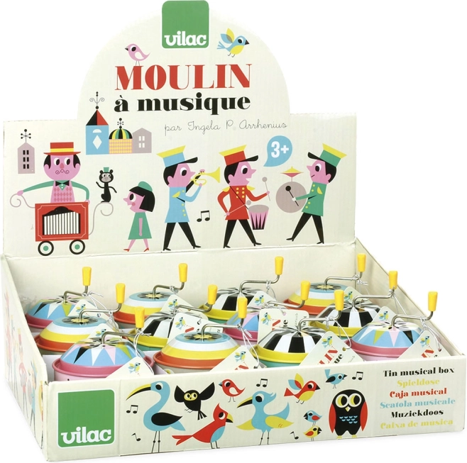 Παραδοσιακή μεταλλική μπιζουτιέρα-κουρδιστό μουσικό κουτί από τη Vilac με εικονογραφήσεις της Σουηδής καλλιτέχνιδας Ingela P. Arrhenius, προσφέρει ευχάριστες μελωδίες. Διαθέσιμη σε διάφορες χρωματικές παραλλαγές.