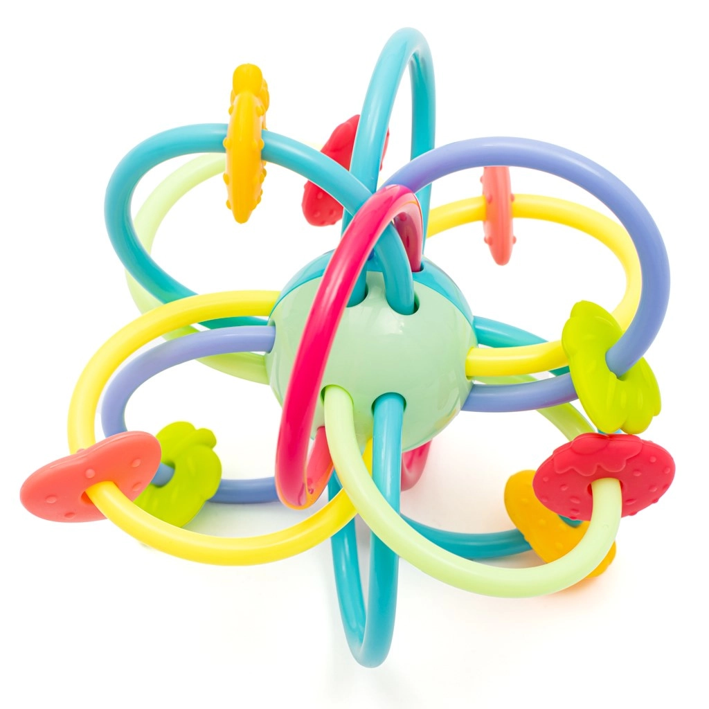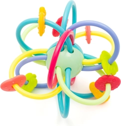 Αυτό το πολυλειτουργικό μασητήρι με απαλή κουδουνίστρα προσφέρει στα παιδιά ανακούφιση κατά την οδοντοφυΐα και ταυτόχρονα απασχολεί τις αισθήσεις τους. Τα μαλακά στοιχεία κάνουν μασάζ στα ούλα, ενώ η κουδουνίστρα διεγείρει την ακοή και βοηθά στην ανάπτυξη του συντονισμού χεριού–ματιού. Χάρη στην ελαφριά κατασκευή και τον μελετημένο σχεδιασμό, το παιδί το πιάνει εύκολα από οποιαδήποτε γωνία.