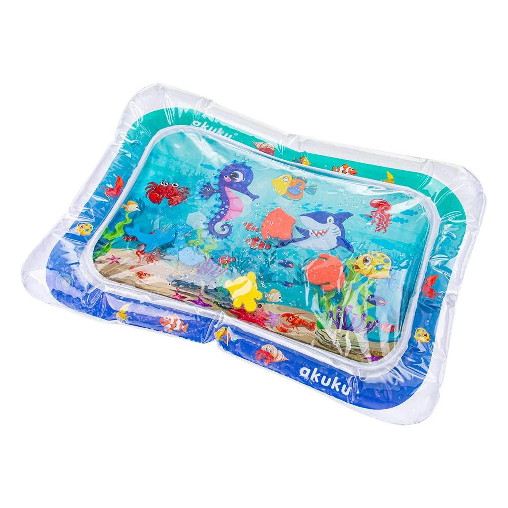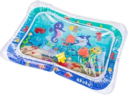 Ο διαδραστικός τάπητας νερού Akuku θαλάσσιος κόσμος έχει σχεδιαστεί για να διεγείρει με παιχνιδιάρικο τρόπο τις αισθήσεις και να υποστηρίζει τη σωστή ανάπτυξη του παιδιού. Χάρη στο υδάτινο κέντρο και τα πέντε επιπλέοντα ζωάκια, το μωρό εξασκεί τον συντονισμό κινήσεων, την οπτική παρακολούθηση και βελτιώνει την ισορροπία. Παράλληλα επιτυγχάνεται ήπια ενδυνάμωση των μυών του κεφαλιού, του λαιμού, των ώμων, της πλάτης και της κοιλιάς.