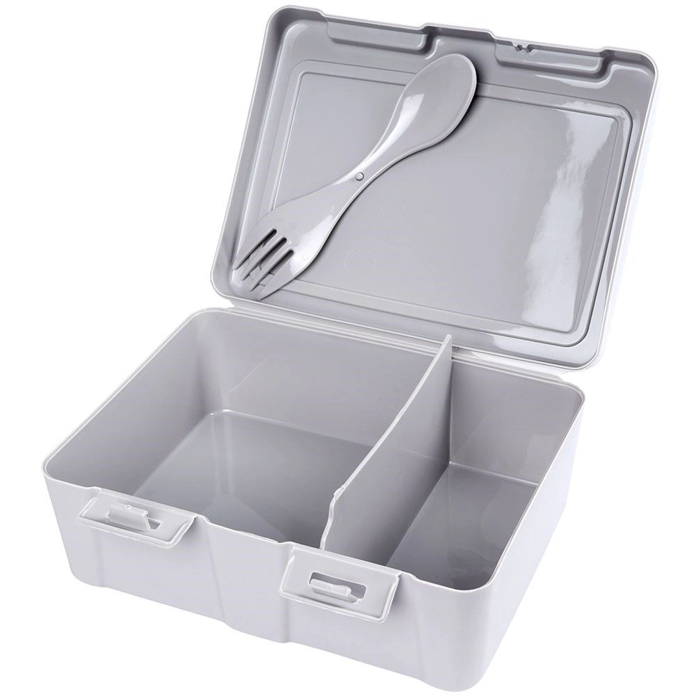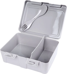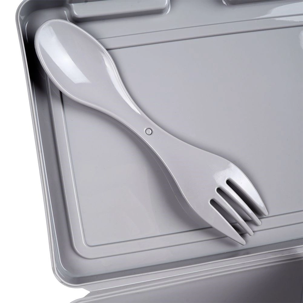 Το κουτί σνακ με δύο θήκες κρατά το φαγητό σας οργανωμένο και φρέσκο. Περιλαμβάνει έξυπνο μαχαιροπίρουνο 2σε1 (κουτάλι/πιρούνι) μήκους 14,5 cm, με δική του θέση κάτω από το καπάκι, ώστε να το έχετε πάντα πρόχειρο. Η ανθεκτική κατασκευή, οι συμπαγείς διαστάσεις και τα στιβαρά κλιπ εξασφαλίζουν αξιόπιστο κλείσιμο κατά τη μεταφορά.
