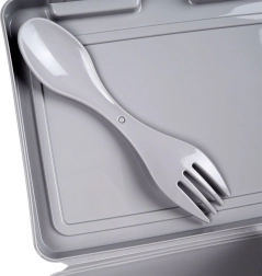 - Συνδυασμός κουτάλι/πιρούνι 2σε1, μήκος 14,5 cm, αποθηκευμένο κάτω από το καπάκι