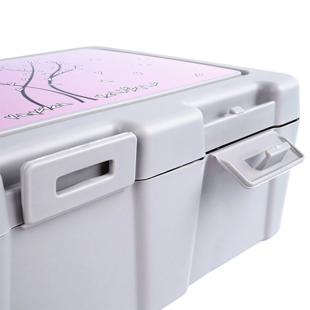 Το κουτί είναι κατασκευασμένο από ποιοτικό πλαστικό κατάλληλο για τρόφιμα, σε κομψό γκρι χρώμα με διακοσμητικό ροζ πάνελ με καρδιές. Ιδανικό για παιδιά στο σχολείο και ενήλικες στη δουλειά, για εκδρομές ή ταξίδια. Για τη διατήρηση της εμφάνισης, δεν συνιστάται πλύσιμο στο πλυντήριο πιάτων ούτε θέρμανση σε φούρνο μικροκυμάτων.