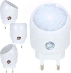 Συμπαγές νυχτερινό LED φως πρίζας με αισθητήρα σούρουπου που ανάβει αυτόματα στο σκοτάδι και σβήνει την ημέρα. Χάρη στη χαμηλή κατανάλωση 1 W και την τροφοδοσία απευθείας από τη πρίζα 220 V είναι ιδανικό για παιδικό δωμάτιο, διάδρομο ή κρεβατοκάμαρα. Η περιστρεφόμενη κεφαλή 360° επιτρέπει να κατευθύνετε το απαλό φως ακριβώς εκεί όπου το χρειάζεστε. Η κομψή λευκή κατασκευή από ποιοτικό πλαστικό ταιριάζει σε κάθε εσωτερικό χώρο.