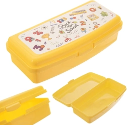 Πρακτικό δοχείο σνακ χωρητικότητας 500 ml σε μοντέρνο κίτρινο χρώμα, ιδανικό για καναπεδάκια, σνακ και μικροαντικείμενα. Διαθέτει ασφαλές καπάκι κουμπώματος με έναν κλιπ, είναι ελαφρύ, καθαρίζεται εύκολα και χάρη στο σχολικό μοτίβο τα παιδιά το αναγνωρίζουν εύκολα. Κατάλληλο για το σχολείο, εκδρομές και ταξίδια.
