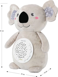 Αυτή η απαλή λούτρινη κοάλα συνδυάζει μια αγκαλιάστρα παιχνίδι με έναν έξυπνο νυχτερινό προβολέα. Με το άναμμα, δημιουργεί σε οροφή και τοίχους έναστρο ουρανό και παίζει νανουρίσματα και λευκό θόρυβο, που ηρεμούν το μωρό και το οδηγούν στη χώρα των ονείρων. Χάρη στον αποσπώμενο προβολέα καθαρίζεται εύκολα και τη χρησιμοποιείτε ακριβώς όπως χρειάζεστε.